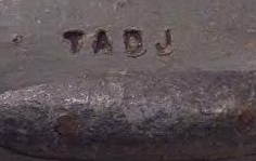 TADJ is a burned brand for an individual gunner—Thomas Albert Dwight Jones.  The brand has block letters and is 1.5 inches long and .25 inches high.